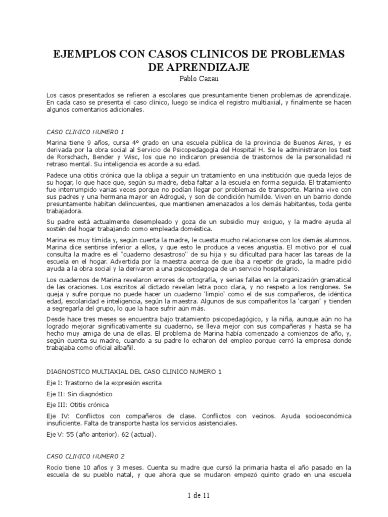 Ejemplos de Casos Clinicos en Trastornos de Aprendizaje